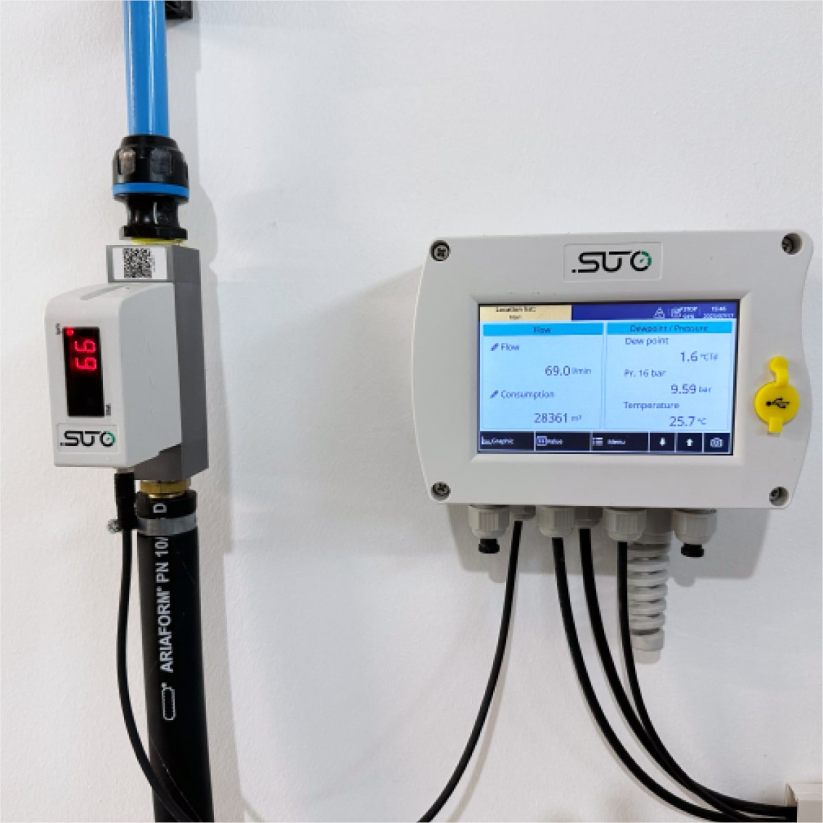 • SUTO S418 kompakt debimetreler ile üretim makinası anlık debi ve toplam tüketim ölçümlerini yapabilir ve dahili datalogger ile veri kaydı alabilirsiniz.