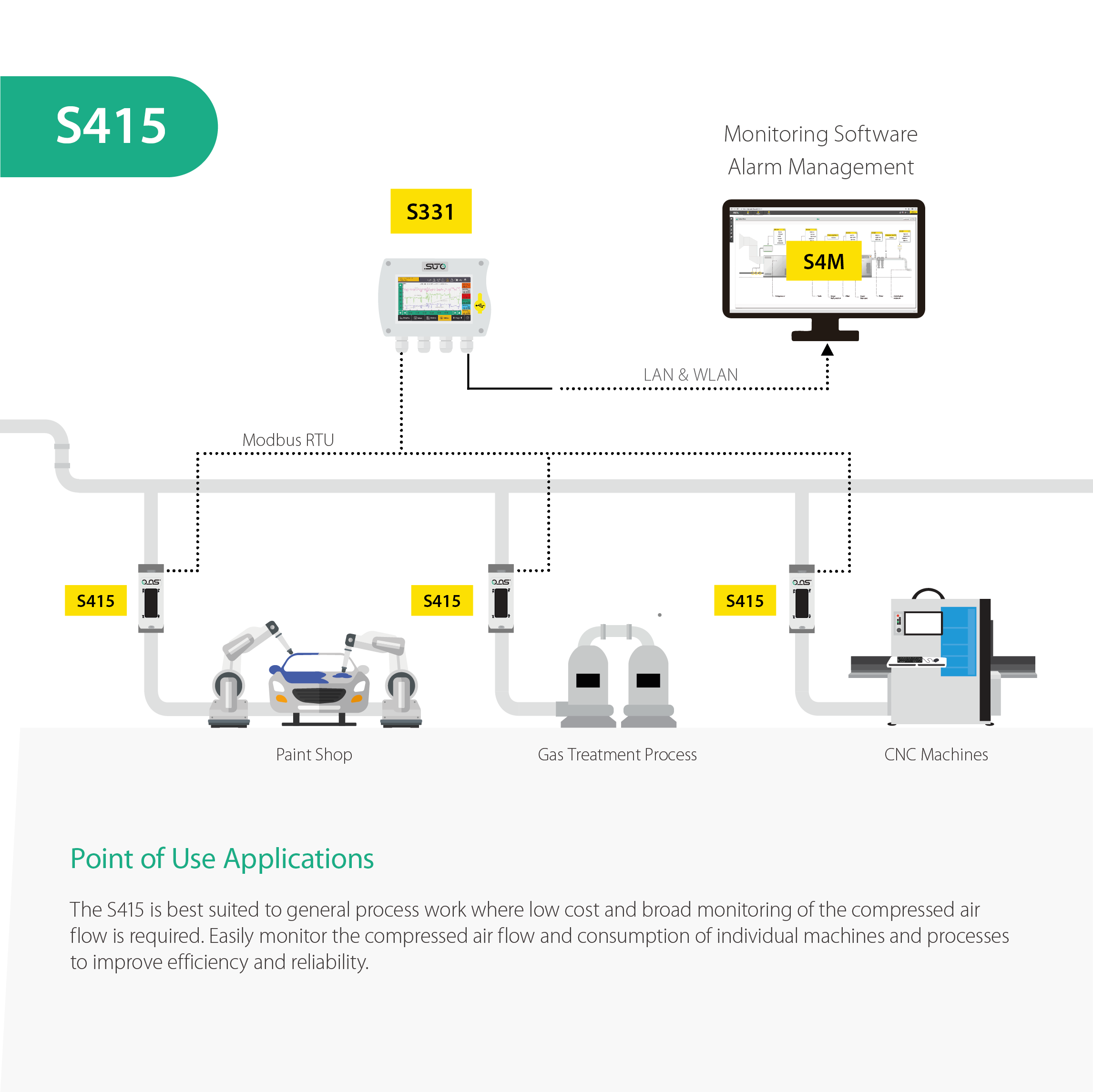 • S418 ile sisteminizi verimlilik açısından geliştirmenize ve basınçlı hava kullanımını azaltmanızı sağlayarak işletme maliyetlerini düşürmenize yardımcı olacaktır.